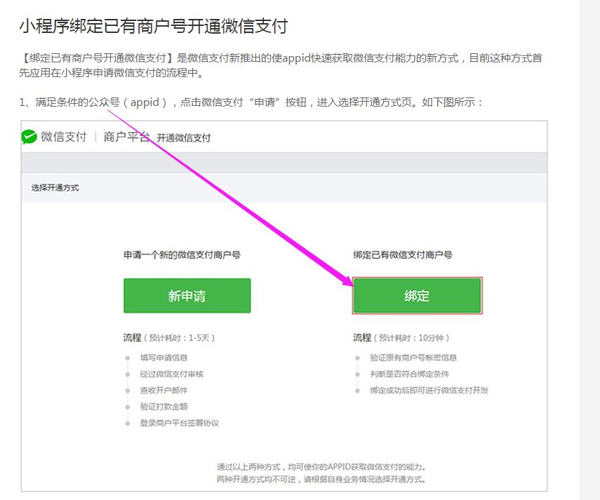 它是点击开通后,没有选项新申请和绑定两个按钮,而是直接跳到了申请填单界面了,而我们是已有商户号的。问题在这里。