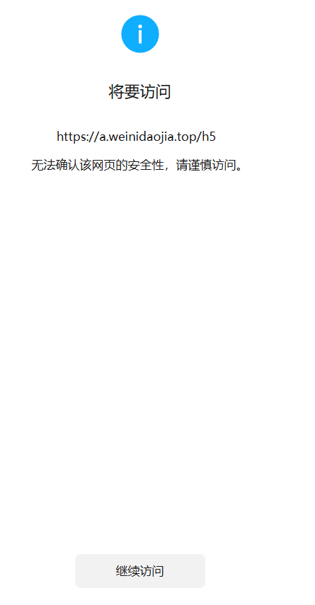 我们的网站在微信打开时,a.weinidaojia.top 使用了二级域名 域名为 https://a.weinidaojia.top/h5 提示“无法确认该网页的安全性,请谨慎访问。 ”。我们的网站是基于公众号开发,已通过安全认证,公众号已加白,已完全合规合法,内容不涉及违规信息,但依然被微信拦截。请协助核查具体原因并提供解决方案。
