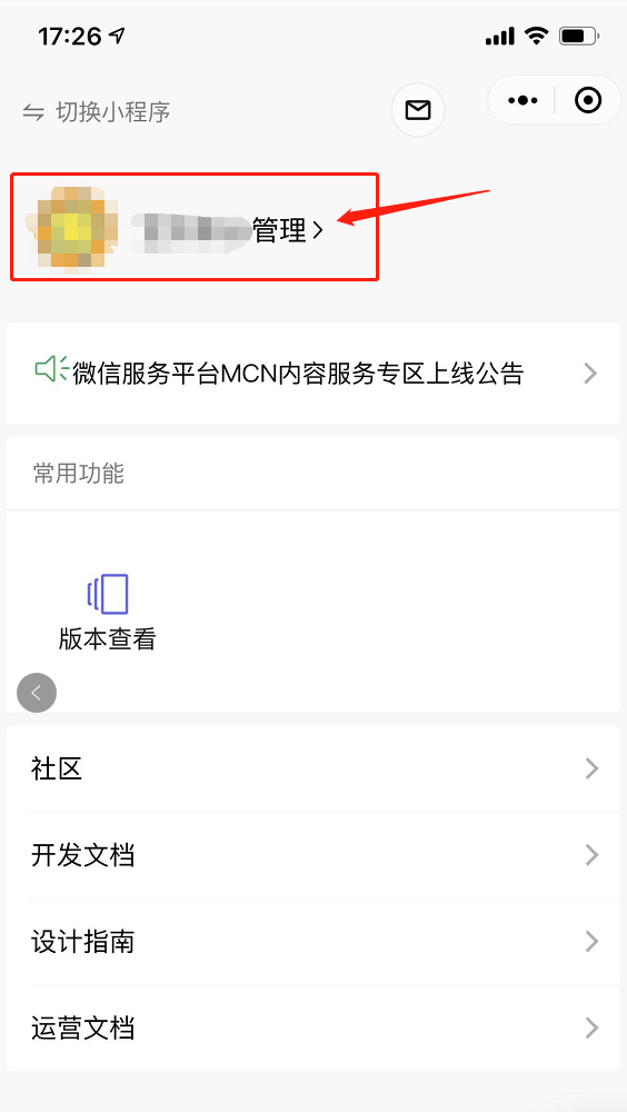 3.点击管理指定的小程序
