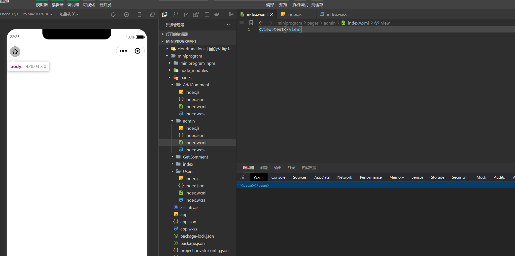 不知道是微信开发者工具的问题,还是我哪里没有弄好,wxml一直没法在模拟器里显示出来。。。
