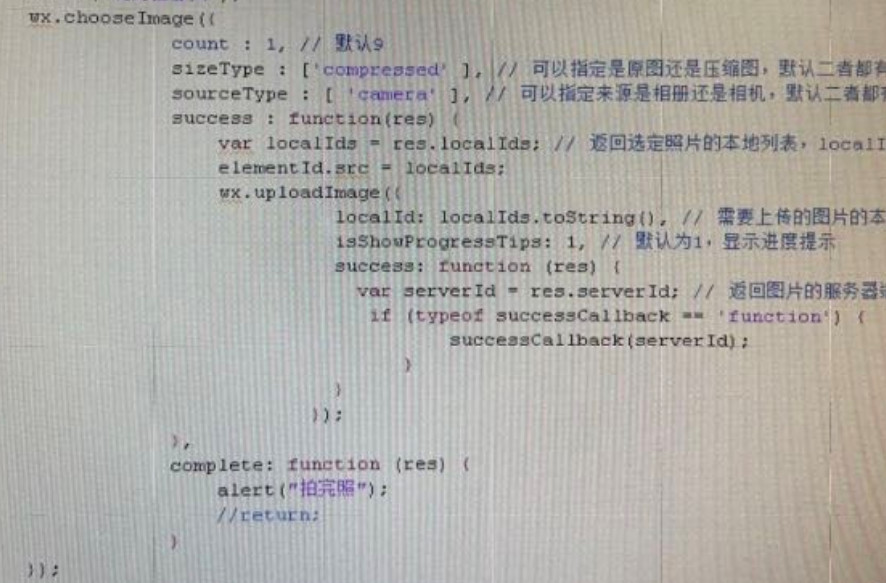 安卓部分机型wx.chooseImage时无法回调complete,调出拍照/取消只能选择拍照,若选择取消则点击页面任何按钮无反应,需按下物理返回键才可进行后续操作。