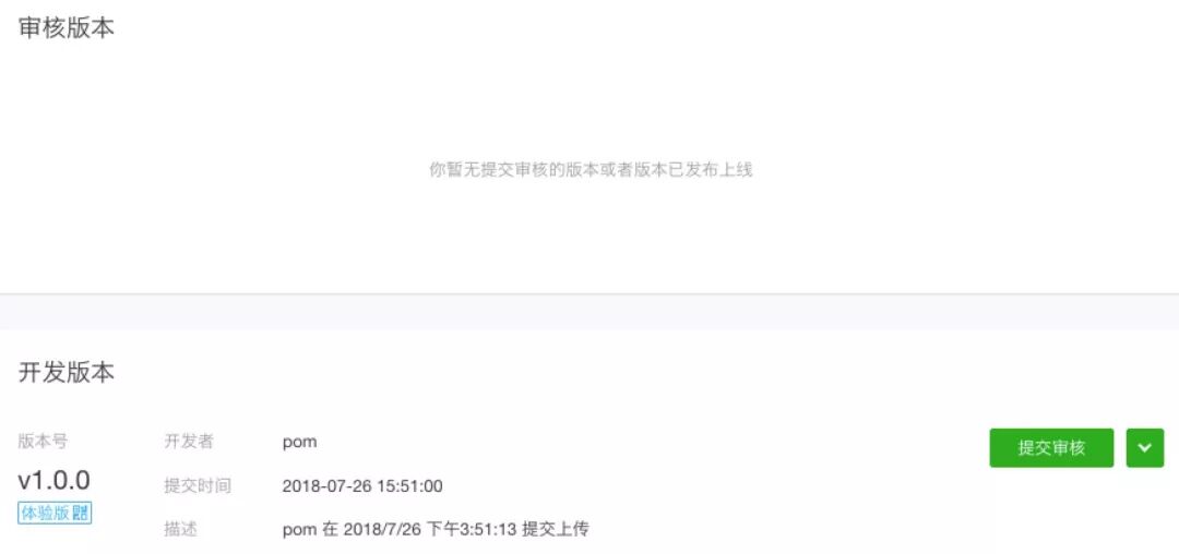 后台点“提交审核”,填完资料上传成功后,后台还是显示暂无提交审核的版本,反复操作了几次都是这样。