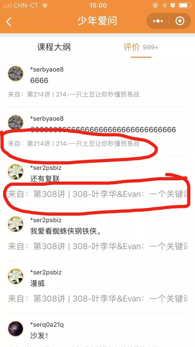 ** 可在微信搜索“少年商学院”,进入后在 “免费专区” -> "少年爱问" -> "评论",即可发现这类情况。如下图: