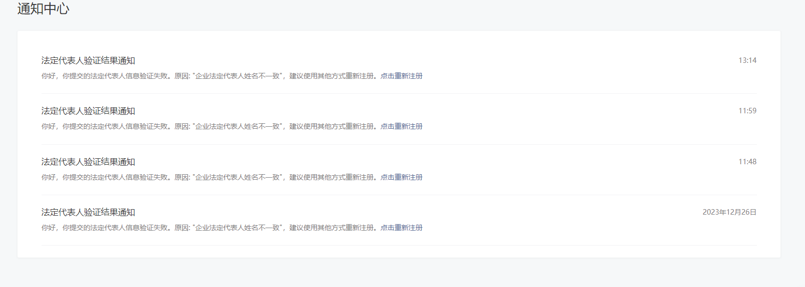 注册不成功,只有这个提示。注册过程中信息没有填错,法人认证也通过。希望快点处理