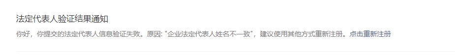 公众号注册不了,信息没有填错,提示“企业法定代表人姓名不一致”注册不通过。