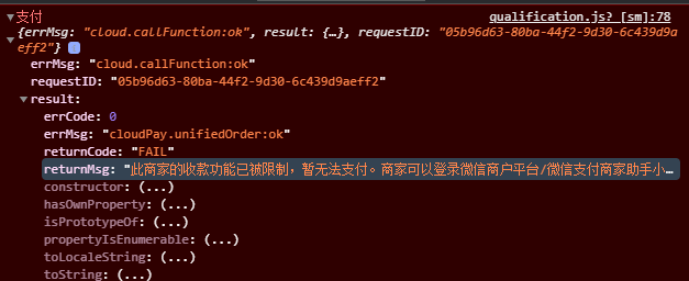此商家的收款功能已被限制,暂无法支付。商家可以登录微信商户平台/微信支付商家助手小程序查看原因和解决方案.