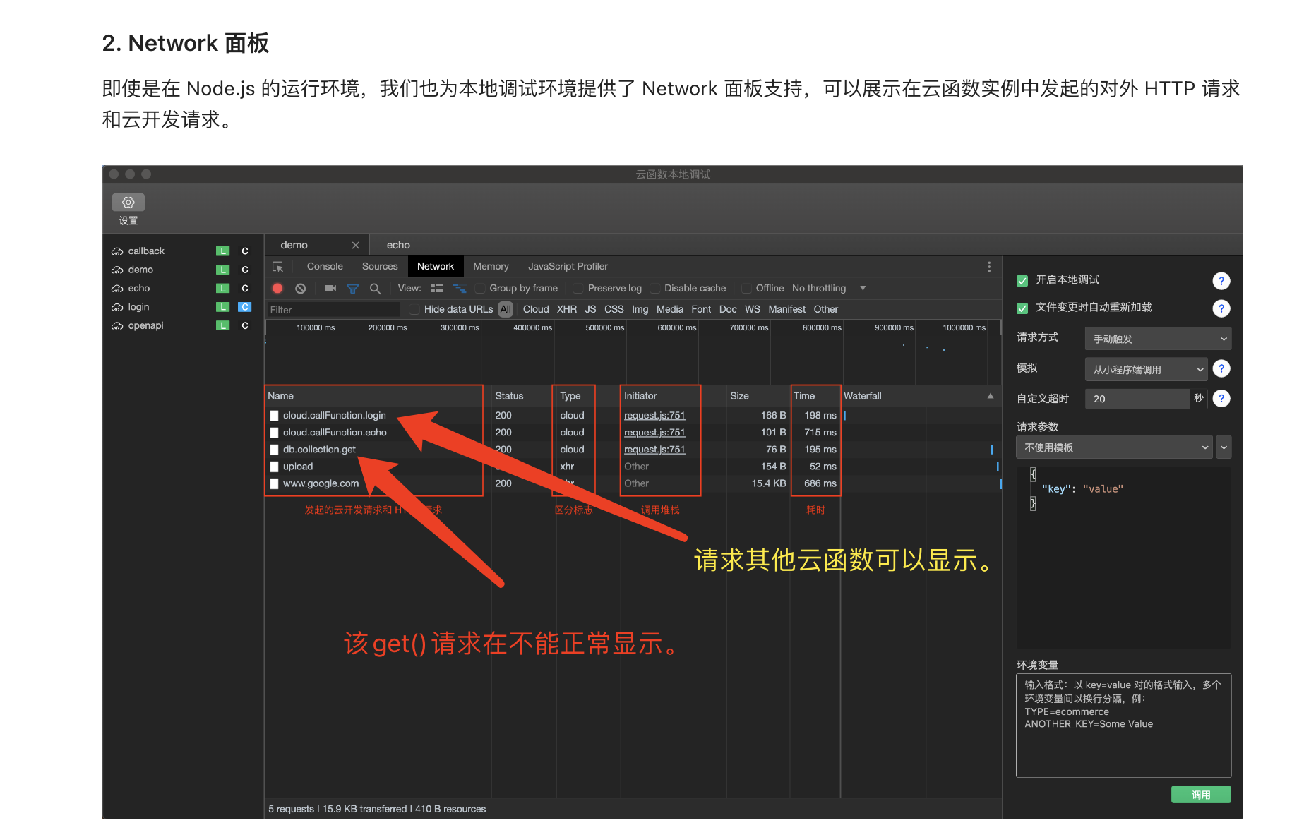 云函数开启本地调试,在云函数调试面板network无法查看云函数的对于本地的请求。
