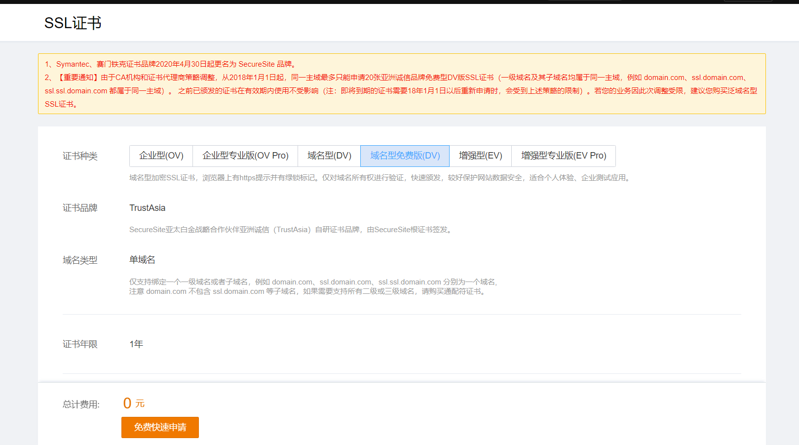 免费的DV SSL证书是能通过小程序的审核的,但是其安全性和兼容性就差很多,建议申请付费的。