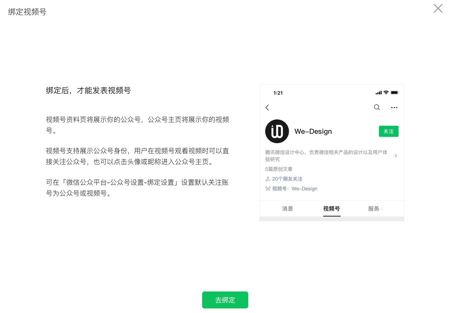 我在公众号后台操作公众号绑定视频号,但是发现无法选择用户关注视频号,还是公众号,这个功能找不到!
