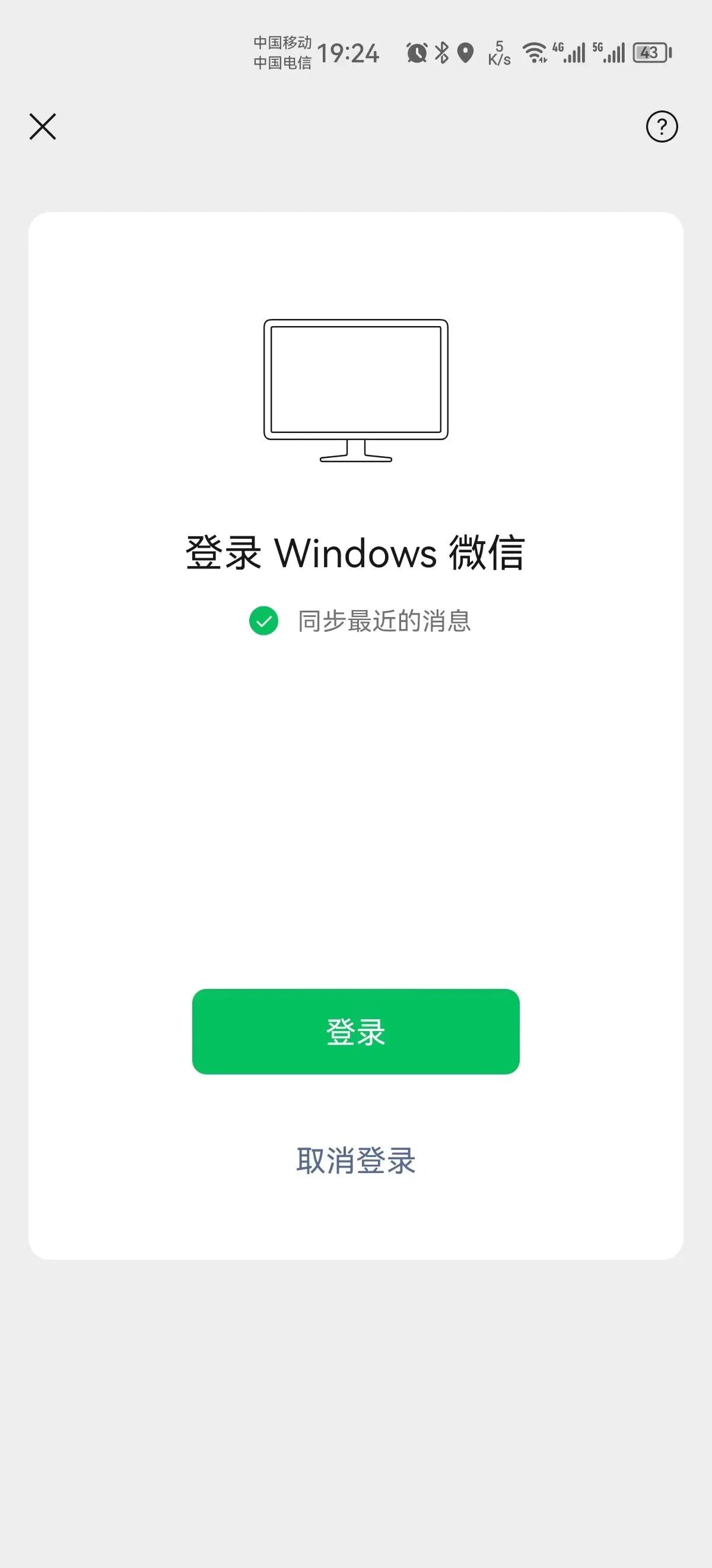 2024年6月1日,电脑重装系统后,反复登录电脑微信也没有自动登录选项,只有“同步最近的消息”这一个选项。