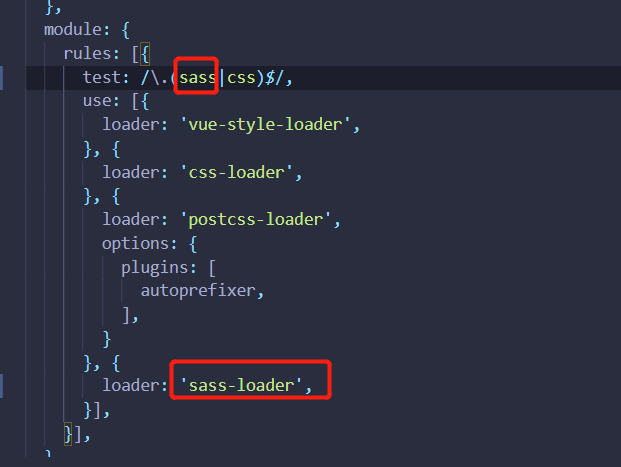 webpack配置里是scss,不是sass。或者你把两个都写上也行