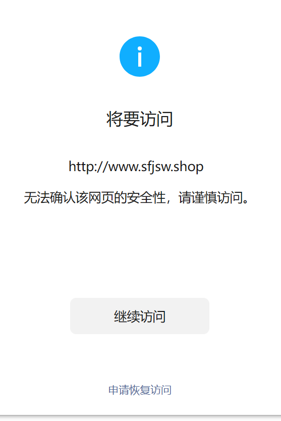这两个是公司新注册的域名,用于香港的业务,解析到香港的服务器,所以域名没有备案,但用户在微信内访问也会提示“将要访问,无法确认该网页的安全性,请谨慎访问。”,在微信内申请恢复访问没有人回复处理,能帮助核实去除这个界面么?