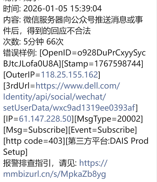 公众号报警进群之后提示 “微信服务器向公众号推送消息或事件后,得到的回应不合法”该怎么解决?