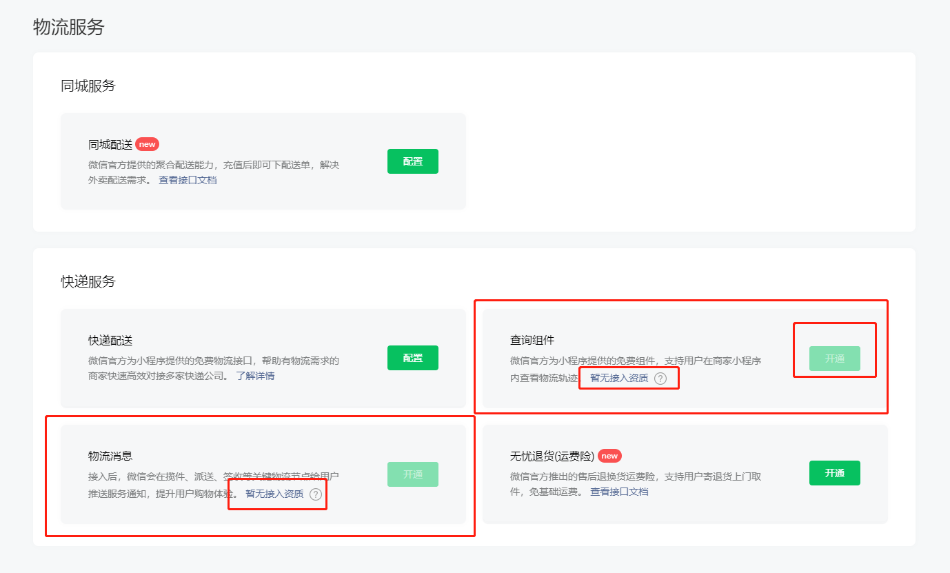 小程序开通物流服务,物流消息、查询插件均无资质,需要如何处理才能获取申请资质?