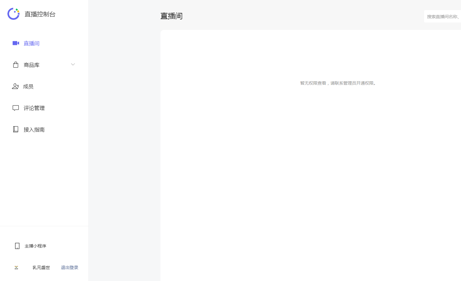 我是管理员登录的,点击直播间显示暂无权限,请联系管理员开通权限