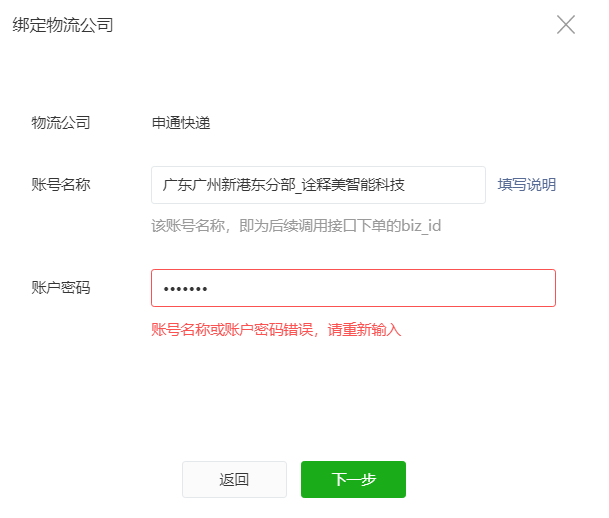 网点名称、客户名称和密码已经再三和申通网点确认无误,但是一直提示有错误。求救。。