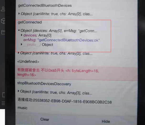 在蓝牙设备连接上的情况下,wx.getConnectedBluetoothDevices在安卓机上是有值得,苹果上没有