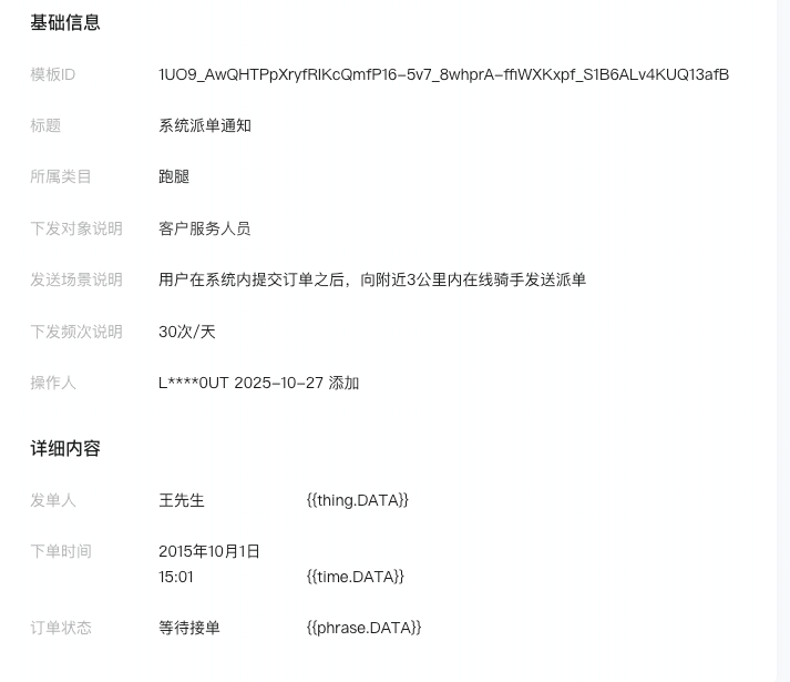 看下模板详情字段是不是thing,如果是加序号=>thing1