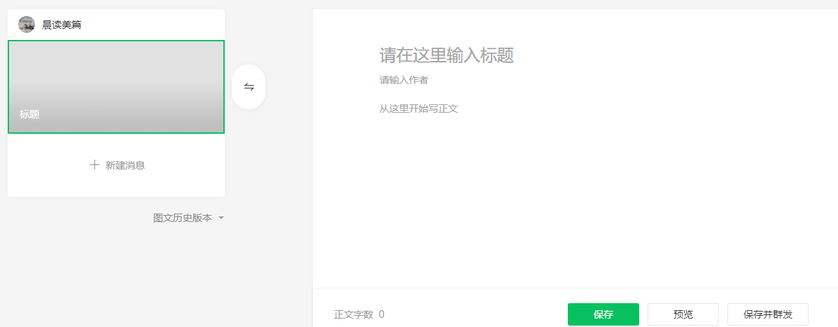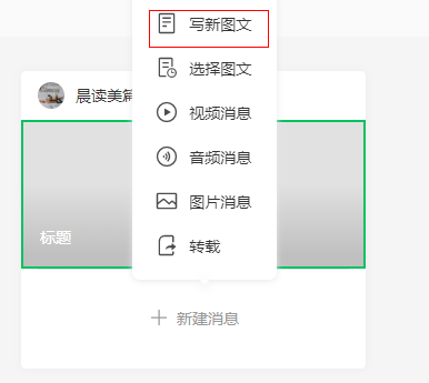 4:第一篇写完后点击加号新建消息写新图文就可以继续完成其他文章了。