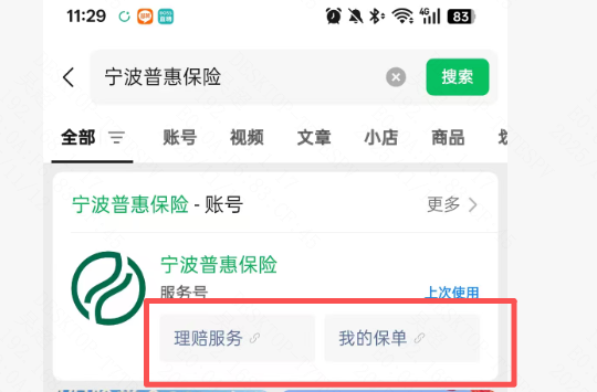 如图所示,搜索宁波普惠保险公众号后,能否不显示下面的功能