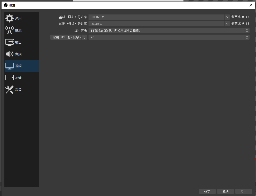 需要把OBS的分辨率设置成竖的