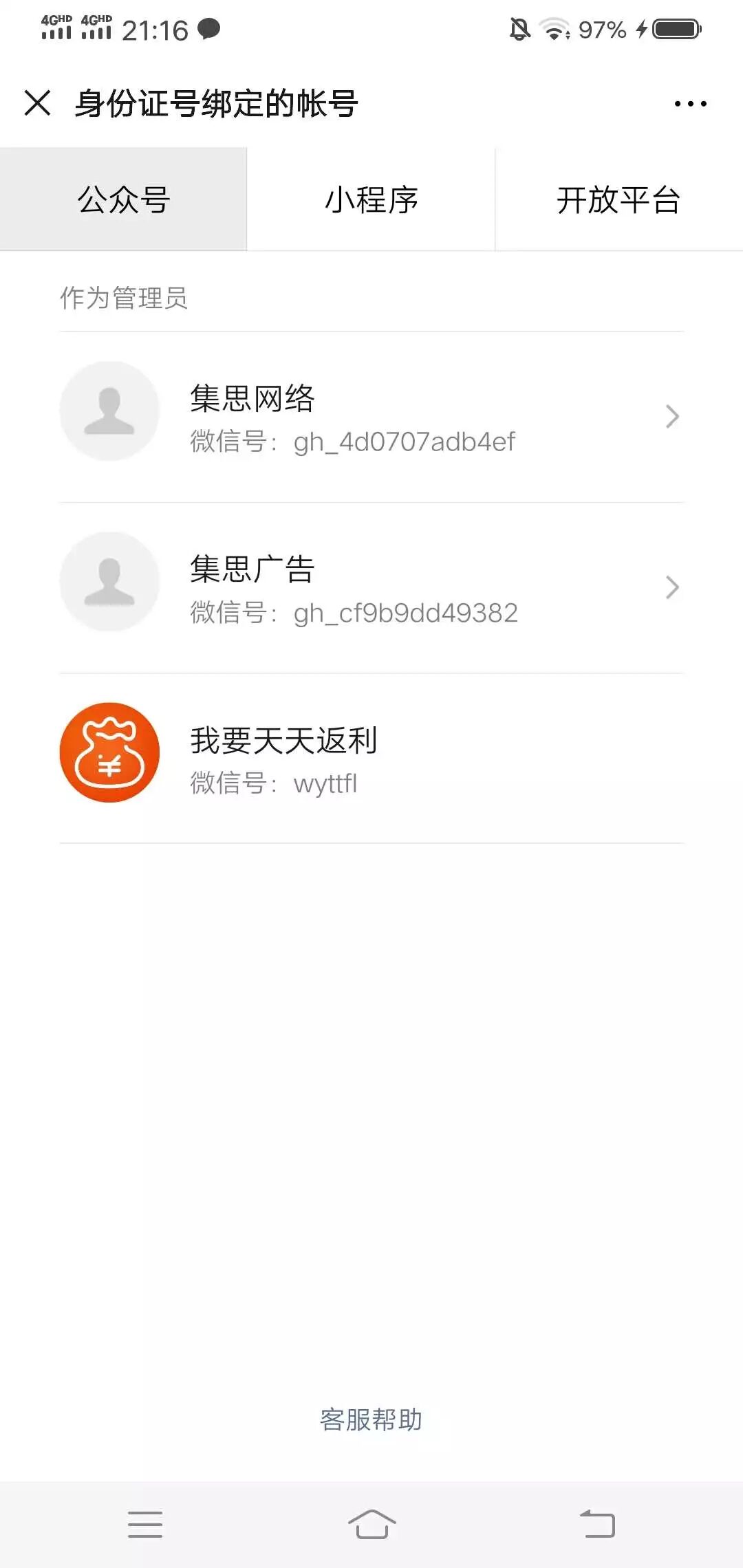 你好,一个身份证号只能绑定一个open帐号,在公众平台安全助手里面可以查询已绑定的帐号。登录微信开放平台帐号,可以更换管理员,更换成功后,原管理员的身份号信息就会解绑。