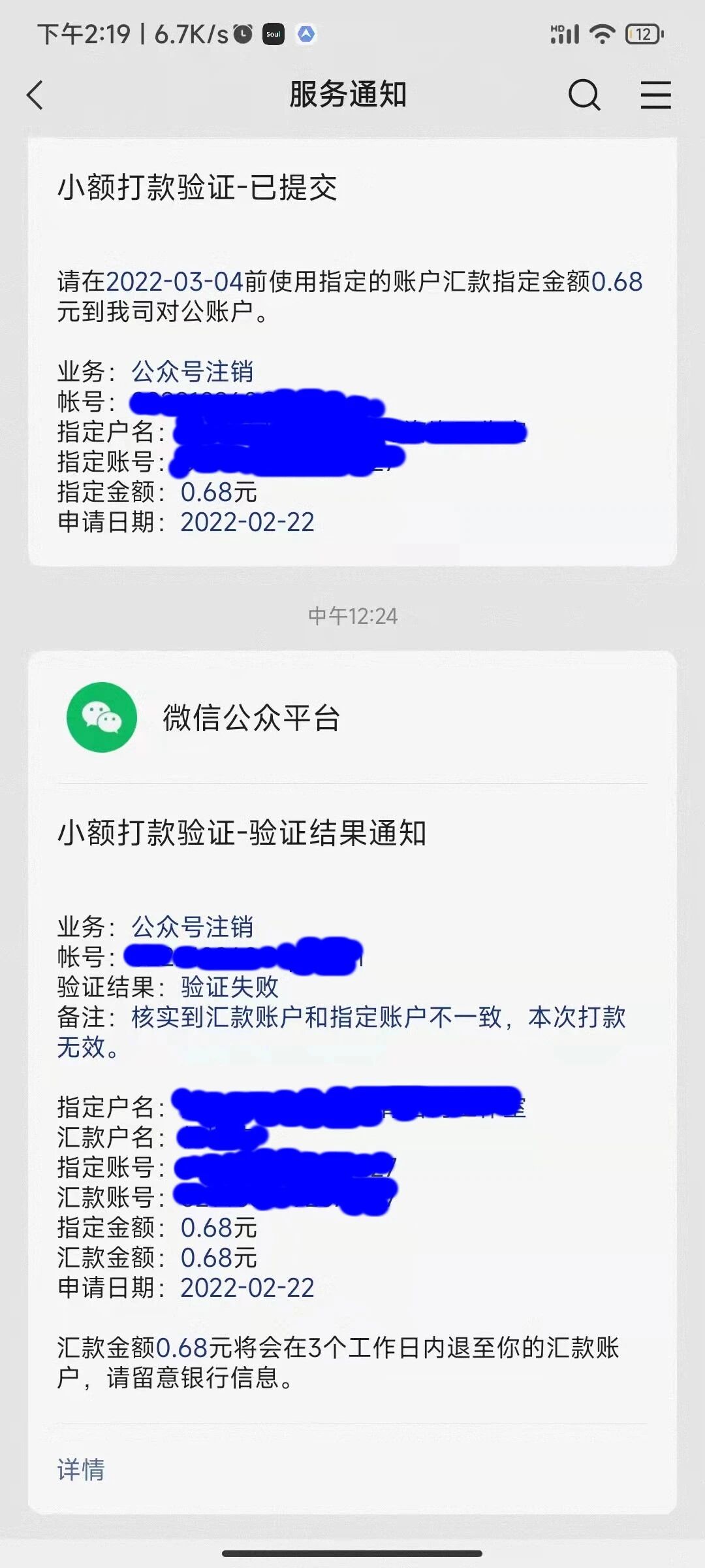 您好 我是个体工商户 没有申请对公账户用的是法人账户 调用微信支付接口的时候用的也是用的法人账户 现在我要注销微信公众号您这边产品设计的是要我用对公账户 目前我的个体工商户在信息公示网已经被注销了根本不可能再去申请对公账户了 您帮我把公众号注销一下啊 你们这个注销公众号的业务很明显有业务逻辑的问题麻烦您这边的产品注意下这个问题