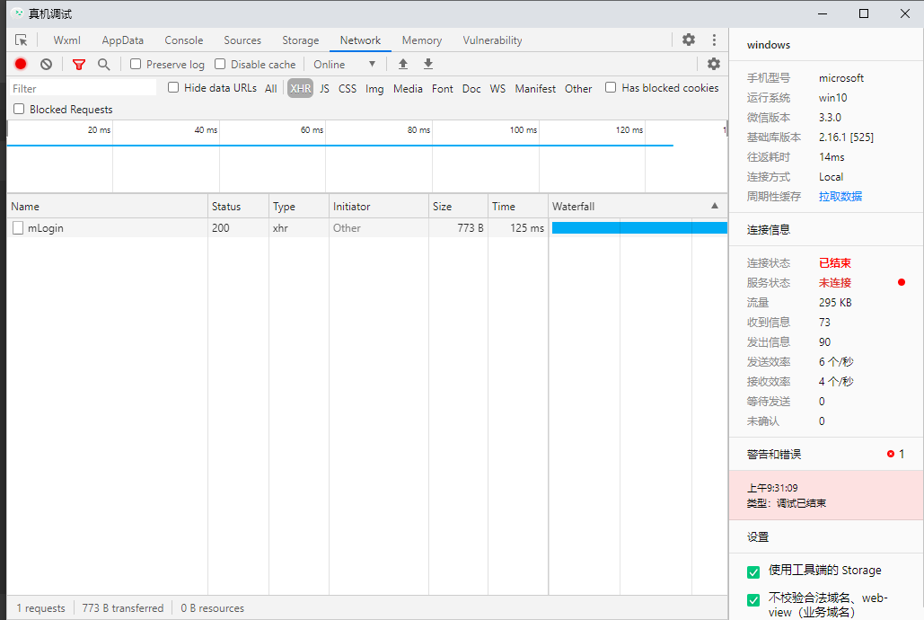 pc微信客户端更新新版微信之后,开发者工具启动pc真机调试,一开始状态为已连接,一访问接口状态就为一结束,无法进行pc真机调试。退回以下两个版本的上一个版本则没有问题