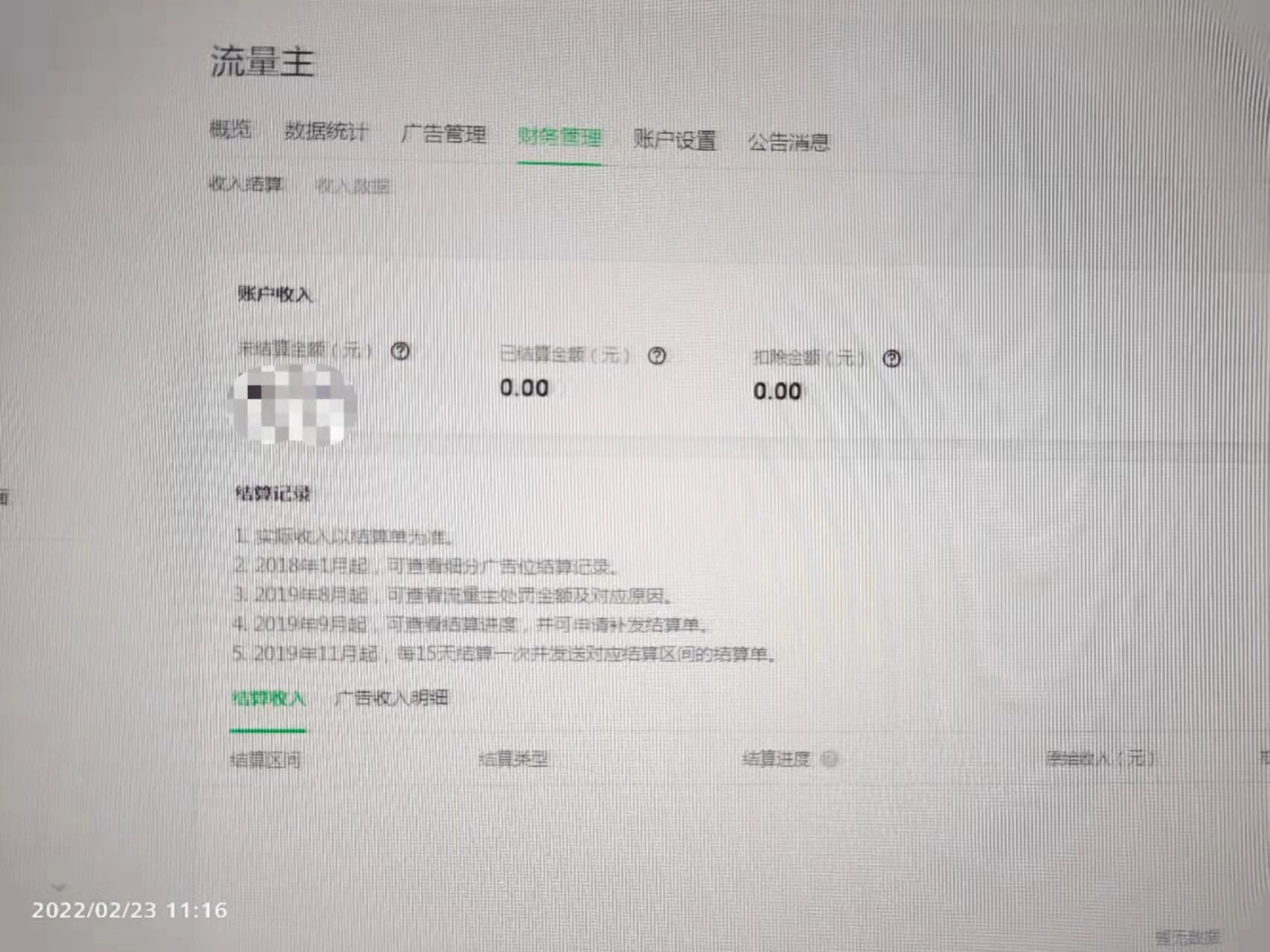 个人流量主是自动结算的,你绑定收款账户了吗?