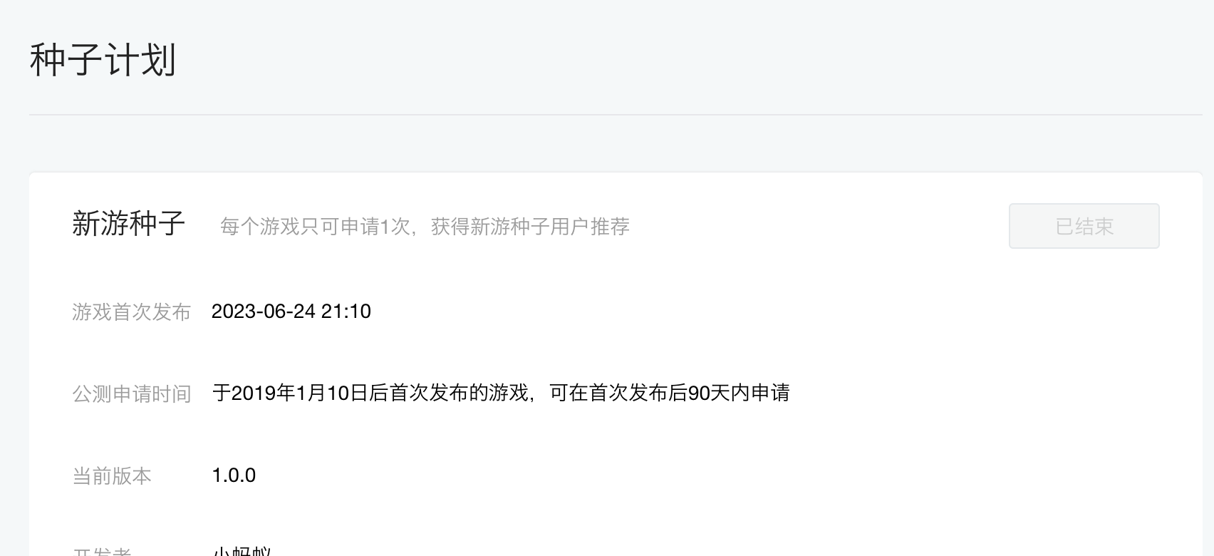 如图,6月24日游戏首次发布后,申请的新游种子,到目前为止一共只有2个种子用户,申请官方大大补一些种子用户,十分感谢。