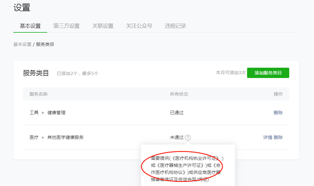 你好,用户小程序涉及”其他医学健康服务“类目未开放服务或内容,无法通过审核。