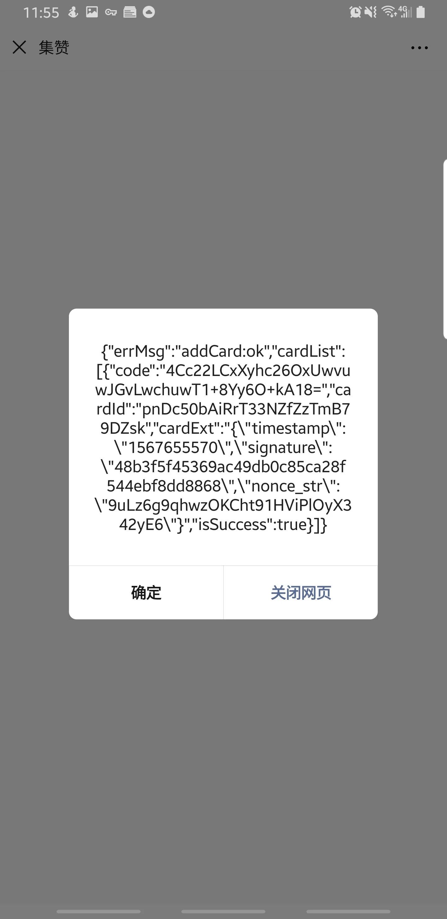 整个领券流程是没问题的,可以领取,但是无法拿到回调,开启debug的话,安卓机会出现一阵子的卡顿和遮罩层,随后弹出一个dialog,如下图,但就是无法执行回调事件。望解答。