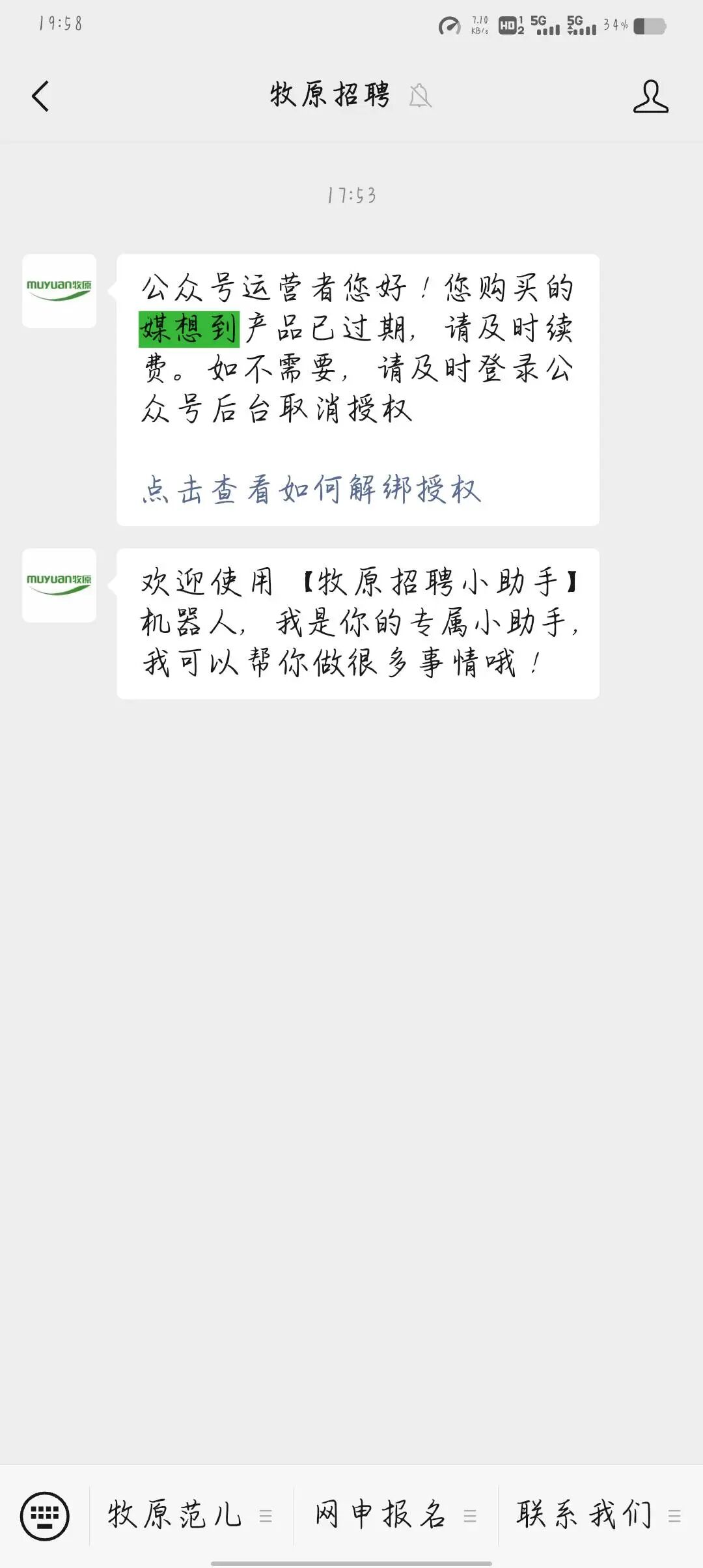 我浏览公众号的时候收到消息说我购买的“媒想到”产品服务到期了,但是我从来都没有买过这个服务啊,我有以下几个问题 1是和企业微信有关吗,怎么取消啊 2他提醒我续费或者解绑,如果我不知道怎么解绑,不续费会不会出问题啊 3怎么查询我有没有绑定其他的第三方服务