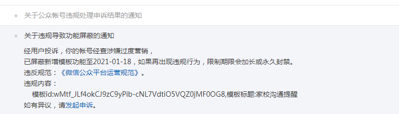 2、请正确理解模板消息接口,规范使用接口能力,共建良好生态。后续如果存在违规,平台会按照梯度处罚规则进行加重处理。
