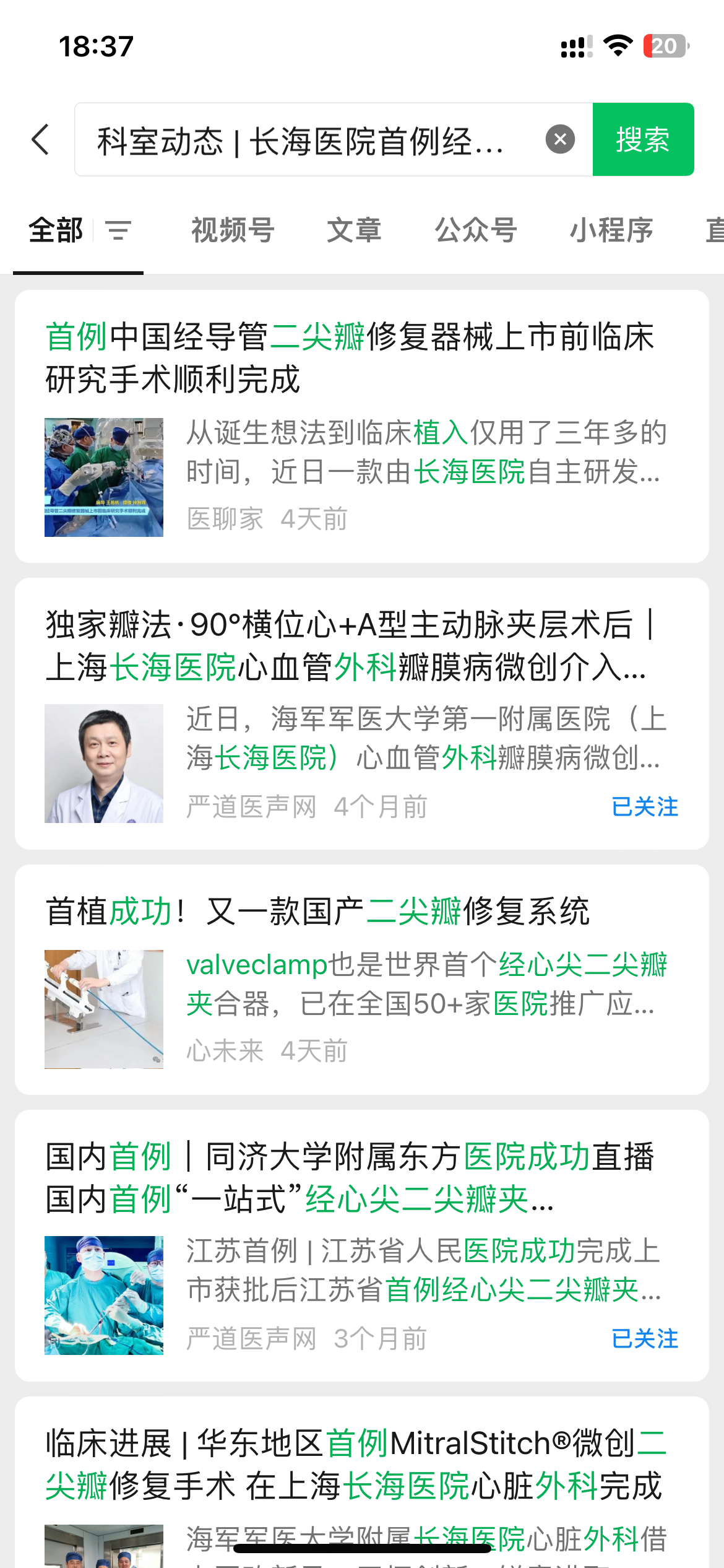 文章主题:科室动态 | 长海医院首例经心尖二尖瓣夹(ValveClamp®)植入成功