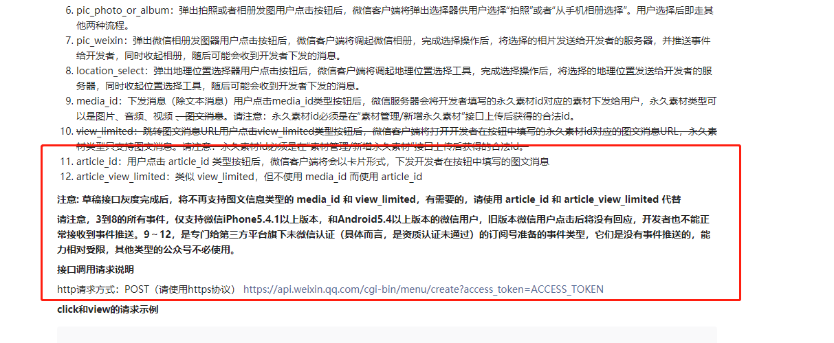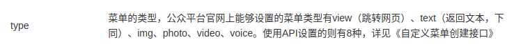 如题,以前菜单类型是有图文的,返回结果样例也是有的,但参数说明已经没有这种类型了,以后公众号官网设置的菜单是不会有图文类型了吗