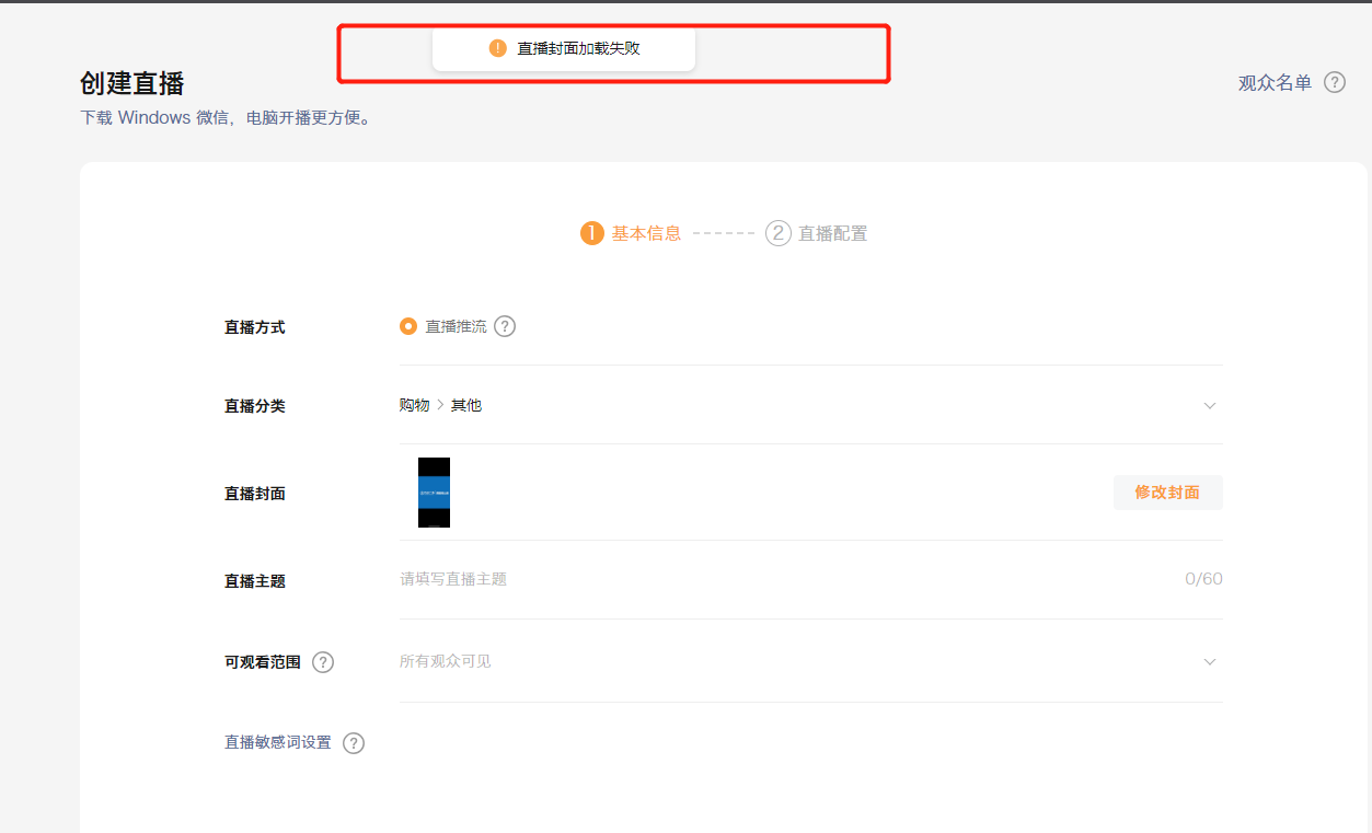 视频号直播无法上传自己做的海报封面呢?一直显示直播封面加载失败