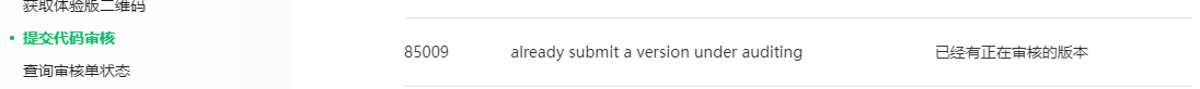 已有正在审核的版本哦,可以调用接口https://developers.weixin.qq.com/doc/oplatform/openApi/OpenApiDoc/miniprogram-management/code-management/getLatestAuditStatus.html自查最新一次审核单状态