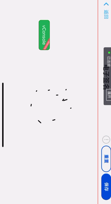 现象:部分机型(iphone14Pro)canva签名不连续,微信版本8.0.47;如图所示,每次触摸屏幕只能在第一下留下痕迹,无报错。