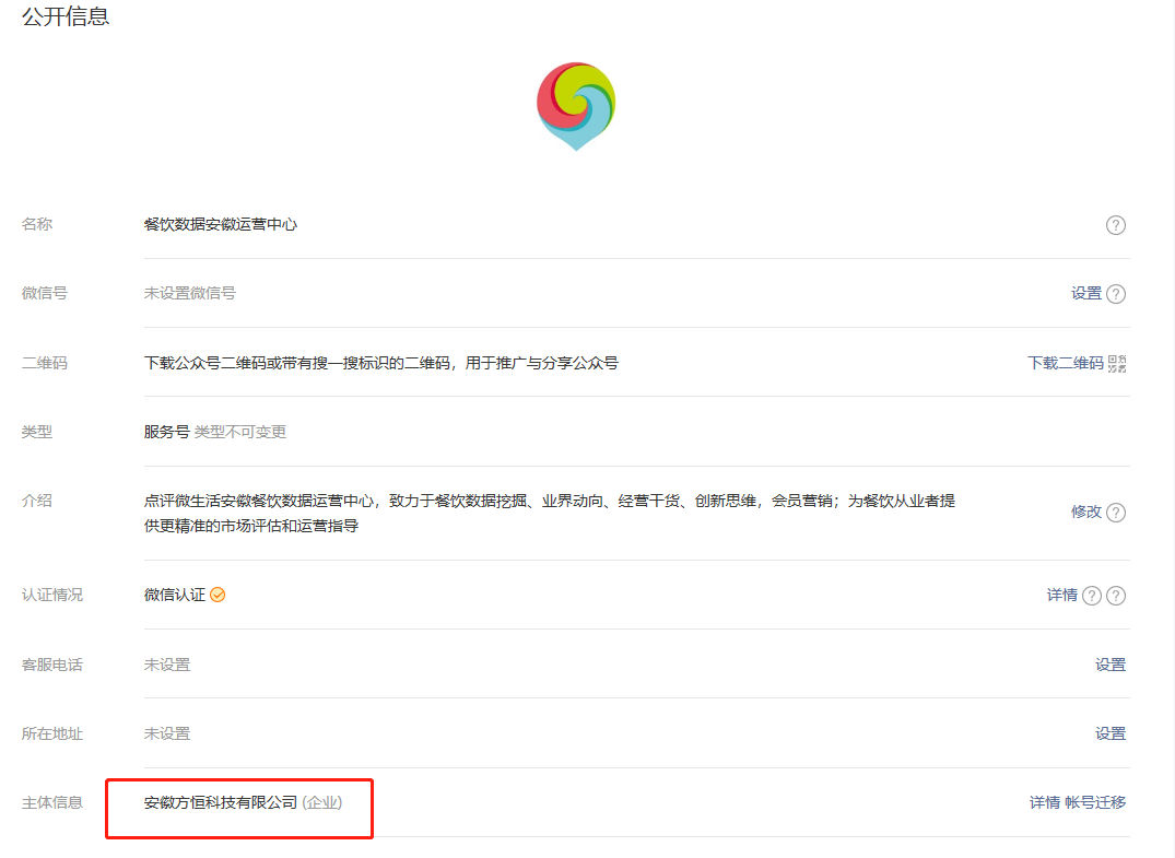 小程序主体通过公众号快速注册认证的,主体与公众号主体一致:安徽方恒科技有限公司;