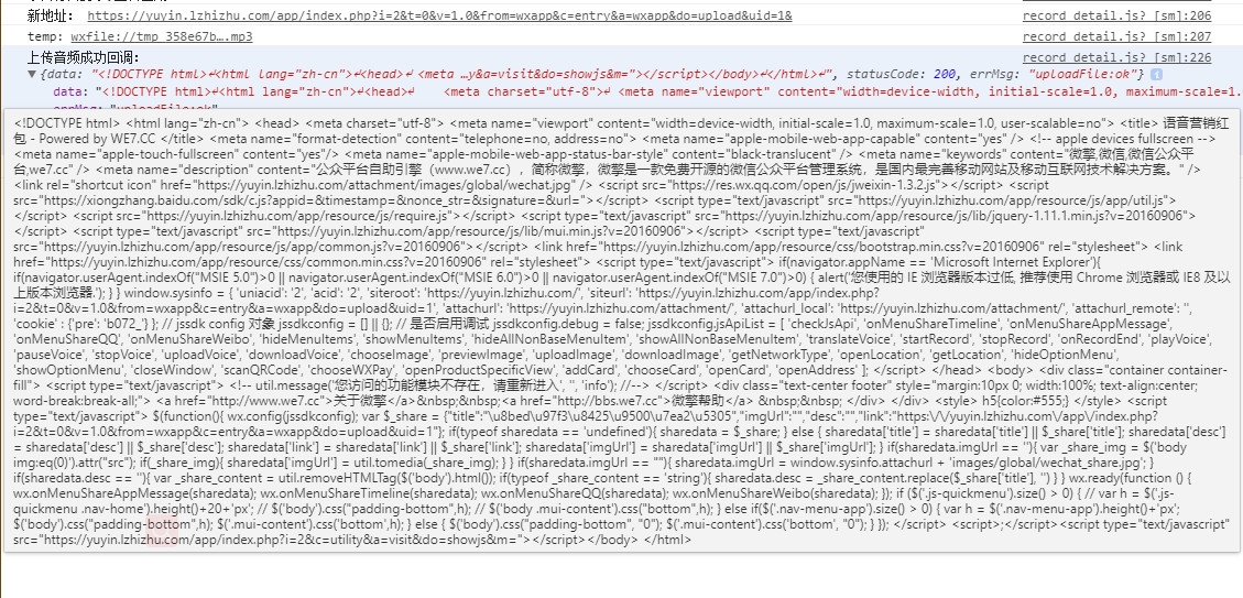微擎绑定小程序开发,其中有个音频上传的功能,但是请求成功,提示的却是‘您访问的功能模块不存在’,望路过的大神指点一下~