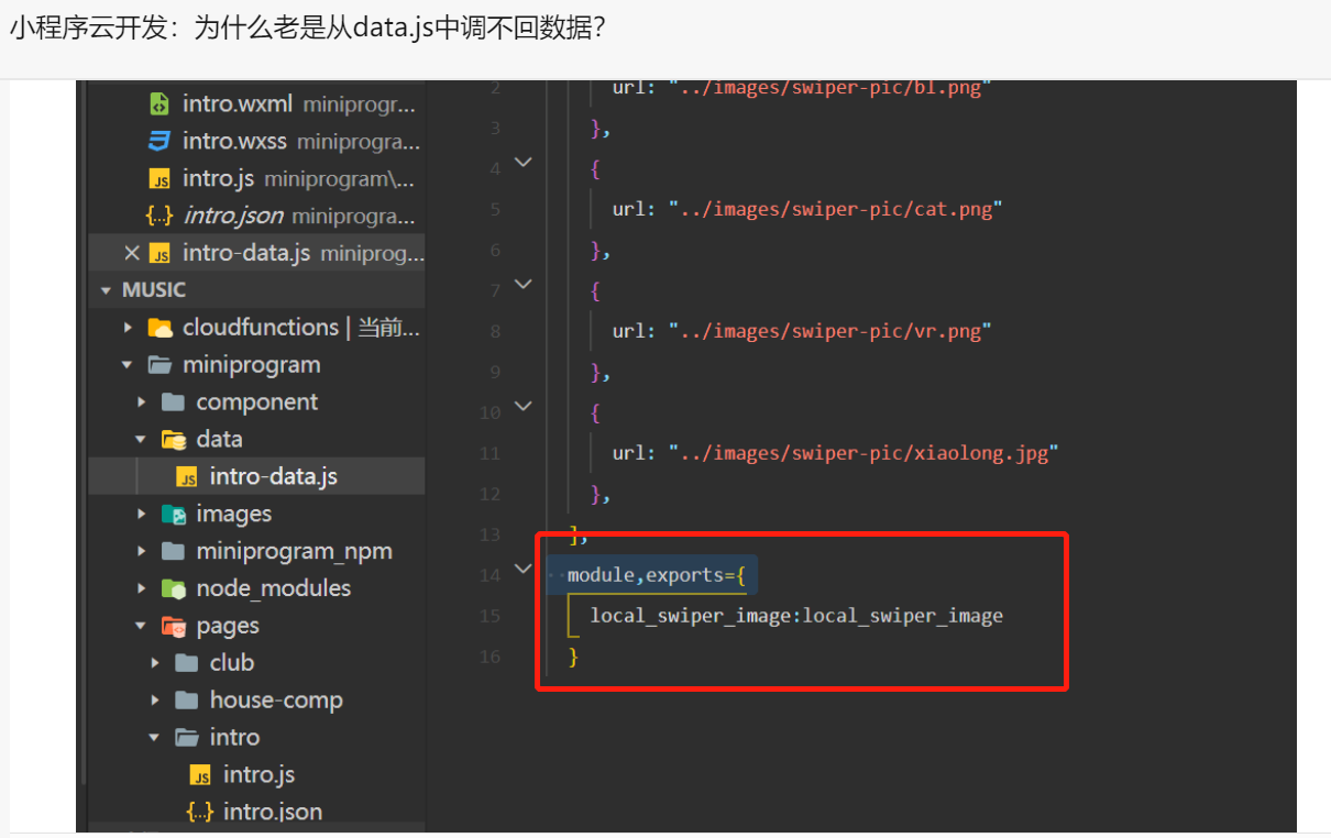 我想要从data.js调数据到intro.js(intro就是要显示数据的页面),但总是调不过来,页面也显示不出来。