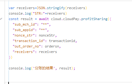 问题:大家在云开发分账时有没有遇到过这个问题吗?报非法参数,但是检查了一下,参数都有,receivers也是字符串类型的
