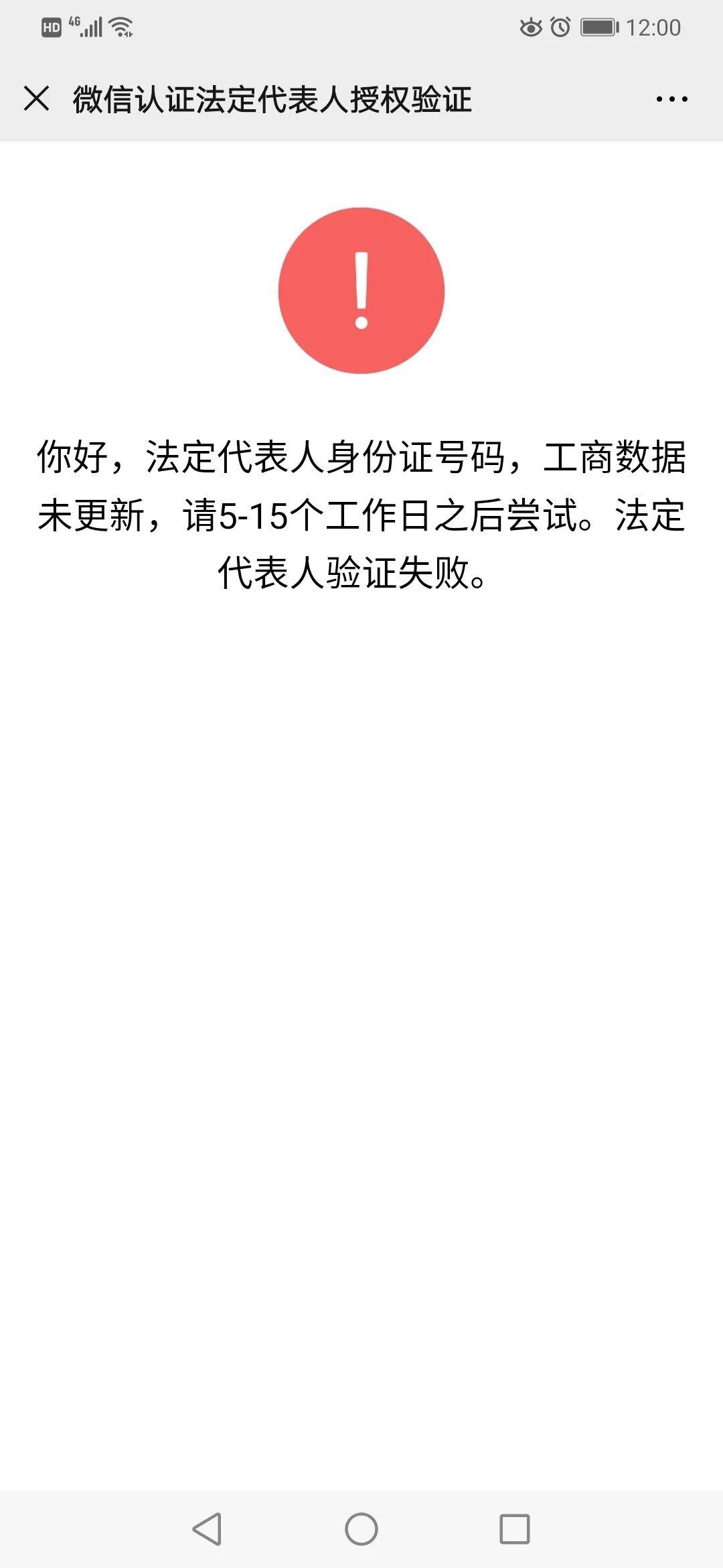 公众号认证提示:法定代表人身份证号码,工商数据未更新,什么原因?