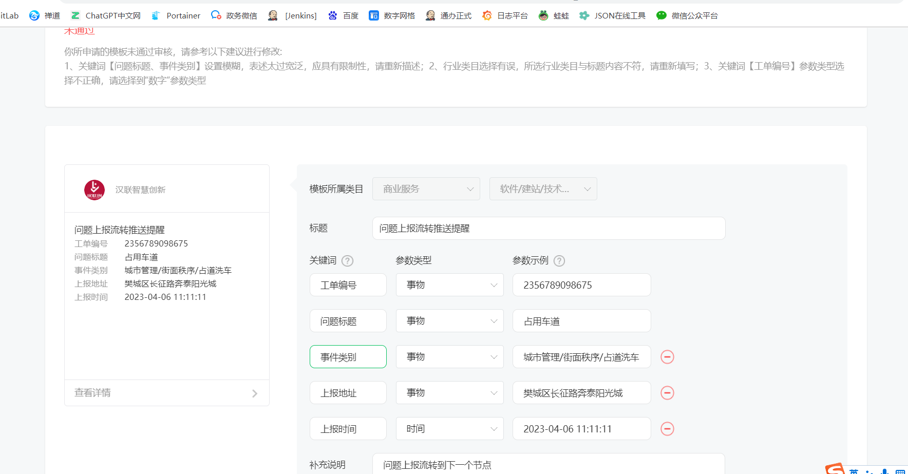 我们公司的性质是给政府做项目,现在开发了一个小程序功能是:市民发现问题进行上报,上保后到相关单位后根据事件类型进行转派,转派到具体的处理单位,那这时候我选择的所属类目应该选择 IT科技、商业服务-软件建设、户政。最开始选择的是IT科技模板驳回说迁移了到商业服务了,然后我对模板进行修改选择 商业服服务,又给我驳回说内容和类目不匹配,所以我应该选什么呀?