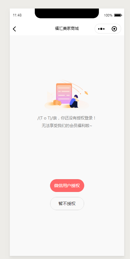 那你的这个用户不授权的话能不能体验你的小程序中的某些功能嘛,比如看看商品啥的,如果不行的话那也是不符合规范的