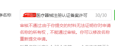 你好,医疗器械认证备案许可存在混淆嫌疑,建议可修改名称后重新提交审核。