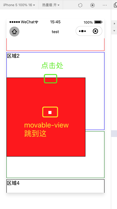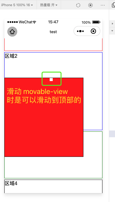 3. 然而,当页面发生滚动之后,滑动 movable-view 的时候,是可以滑动到 movable-area 的任何区域的,没有受到页面滚动的影响