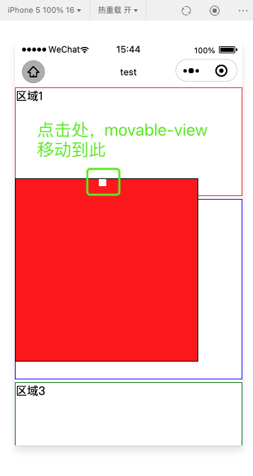 1. 当 movable-area 的 position 为 fixed 或处于遮罩层中时,如果页面没有滚动,点击 movable-area 任何一处 movable-view 都会移动到点击位置,比如点击顶部中间,movable-view 会移动到顶部中间