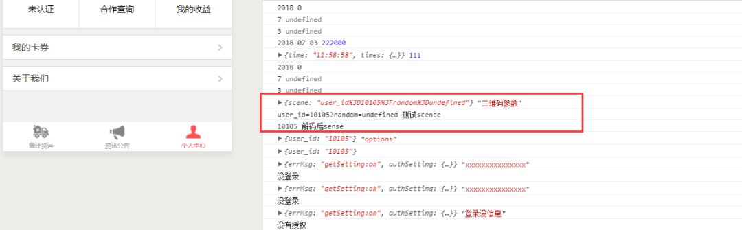{scene: "user_id%3D10105%3Frandom%3Dundefined"} "二维码参数"